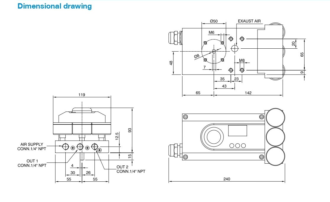 This product accepts 4-20 mA valve setting signal from the control system; at the same time, it receives the actual valve signal through the local sensors. The two signals are compared by control software in order to control the feeding to the actuator and the exhaust from the actuator, driving the valve to reach the set point. It can overcome friction and the imbalance power on the control valve, and improve the response speed of the control valve. Thus, it can reach the required position rapidly and accurately.
