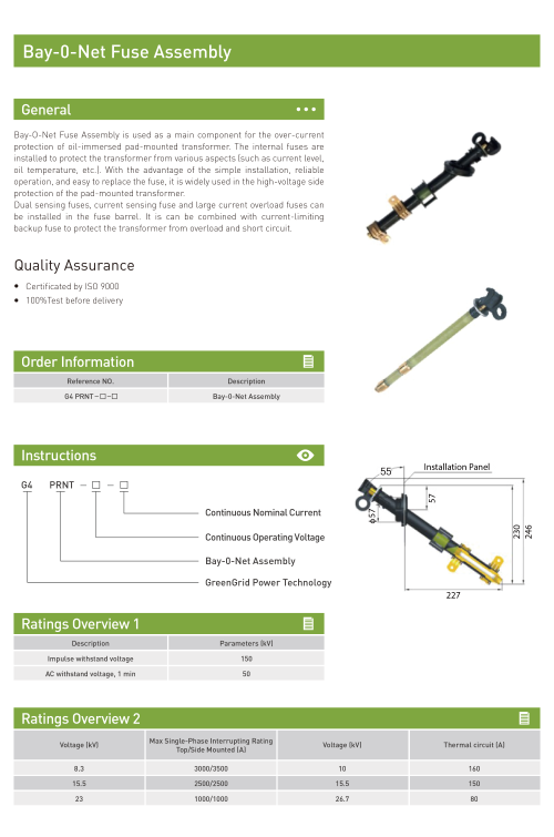 Pad-mounted transformer components solutions, including cable connectors, low voltage bushing, backup fuse, bay-o-net fuse, dual sensing fuse link, tap changer, loadbreak switch, pressure vacuum gauge, oil level indicator, bimetal thermometer, etc.