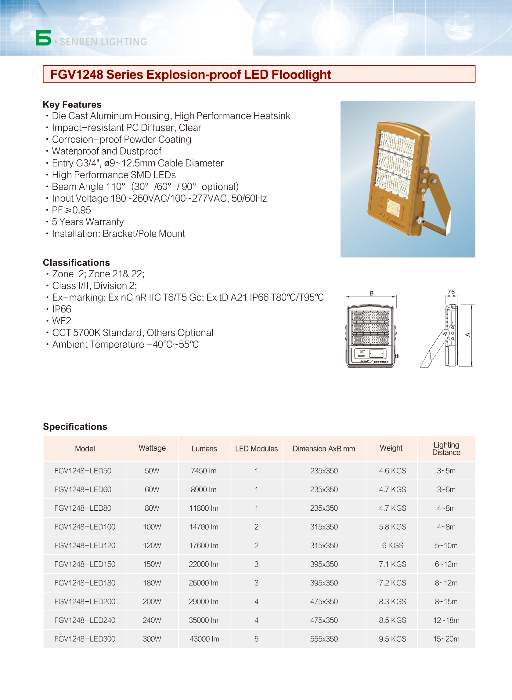 Senben | FGV1248-LED50 Explosion-proof LED Floodlight