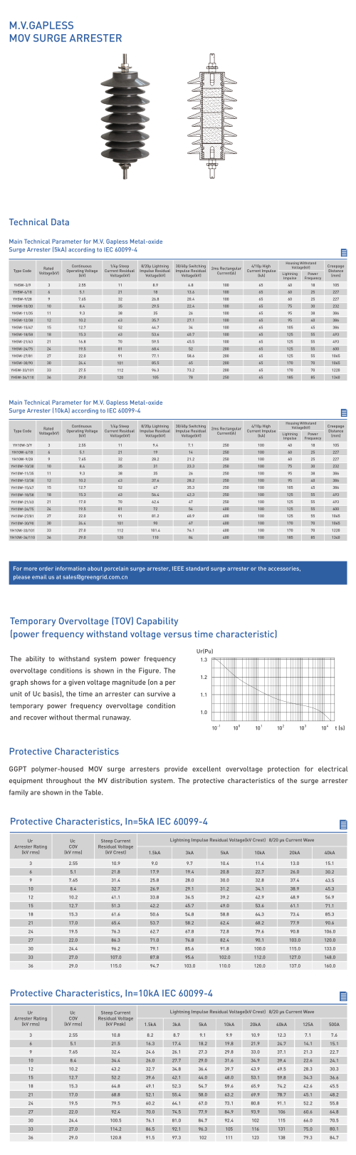 Product Name : M.V. 5kA Gapless MOV Surge Arrester up to 36KV